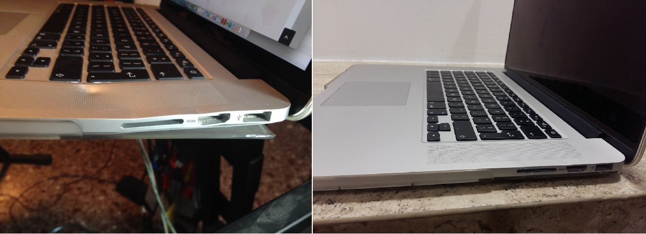 Όπως φαίνεται ξεκάθαρα και στη φωτογραφία το αλουμίνιο του Macbook Pro A1398 στράβωσε μετά από ένα ατύχημα που είχε με ένα ηχείο που έπεσε πάνω του. Από το βάρος του στράβωσε και ο ιδιοκτήτης του μας το έφερε για να το αλλάξουμε. Εμείς δε το αλλάξαμε γιατί δε θα το είχε στο χρόνο που θα το ήθελε γιαυτό το επισκευάσαμε αυθημερόν.